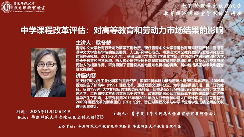 欧冬舒:中学课程改革评估:对高等教育和劳动力市场结果的影响
