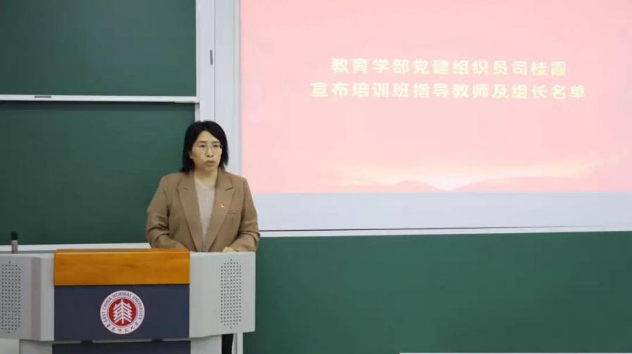 教育学部党建组织员司桂霞老师宣布本次培训班指导教师及组长名单。