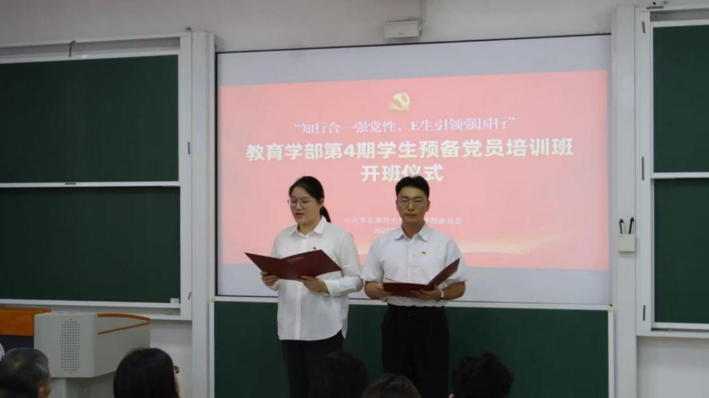 2025年10月29日13点30分,教育学部第4期学生预备党员培训班开班动员仪式在文附楼503顺利举行。教育学部党委书记闫露,教育学部关工委副主任张志杰,教育学部特邀党建组织员梅剑,教育学部党建组织员司桂霞,教育学部学生党建中心指导教师胡航,以及本期培训班的学员共同参加活动。仪式由课程与教学系2025级硕士生王锦荣、学前教育学系2023级本科生杨珊珊主持。
