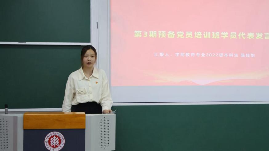 作为第三期培训班学员代表,学前教育专业2022级本科生陈佳怡同学结合自身的成长与实践,分享了她在理论学习、专业成长以及社会服务过程中的感悟和收获,并对本期培训班的同学们提出两点建议:一是沉下心来学思践悟,将党的创新理论与个人发展紧密联系;二是迈开步子知行合一,积极参与每一次实践与研讨,从细微处践行初心使命。