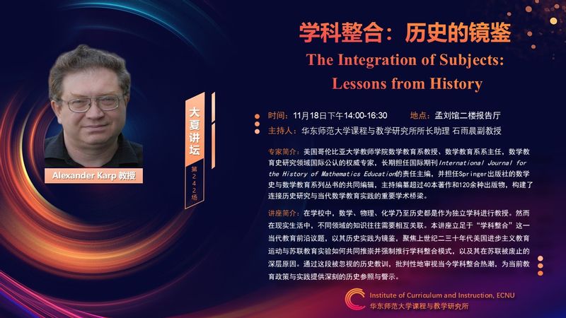 Alexander Karp 教授:学科整合:历史的镜鉴 The Integration of Subjects: Lessons from History