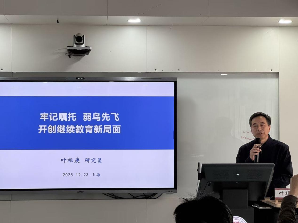 为深入学习贯彻习近平总书记关于教育强国与学习型社会建设的重要指示精神,2025年12月23日,开放教育学院党总支举办主题党日活动,特邀宁德开放大学原党委书记、校长叶祖庚研究员作专题报告,并举行兼职研究员聘任仪式。活动由党总支委员、开放教育学院副院长马爱民主持,学院党总支书记赵健及30余名党员、教职工参加学习。