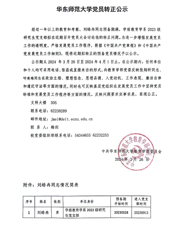 【公示】教育学部关于华东师范大学2023年度优秀共青团员、优秀共青团干部及五四红旗团组织的公示