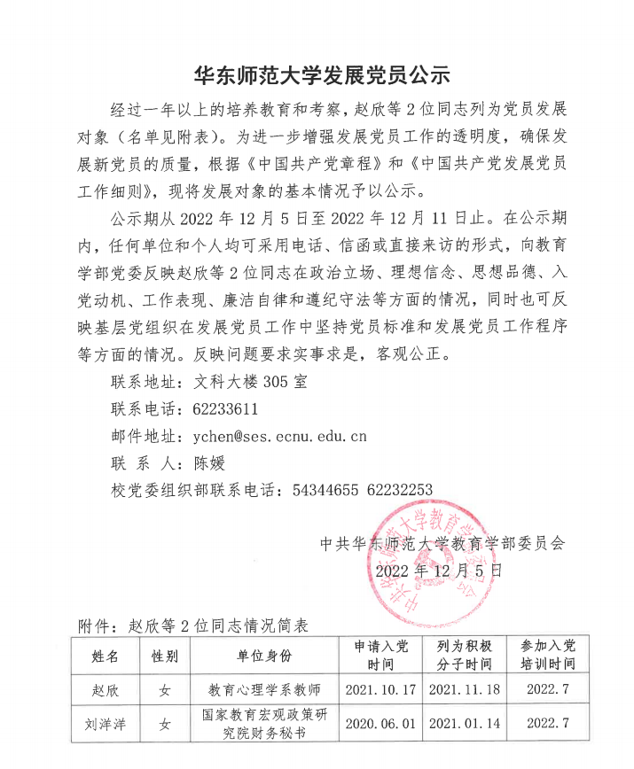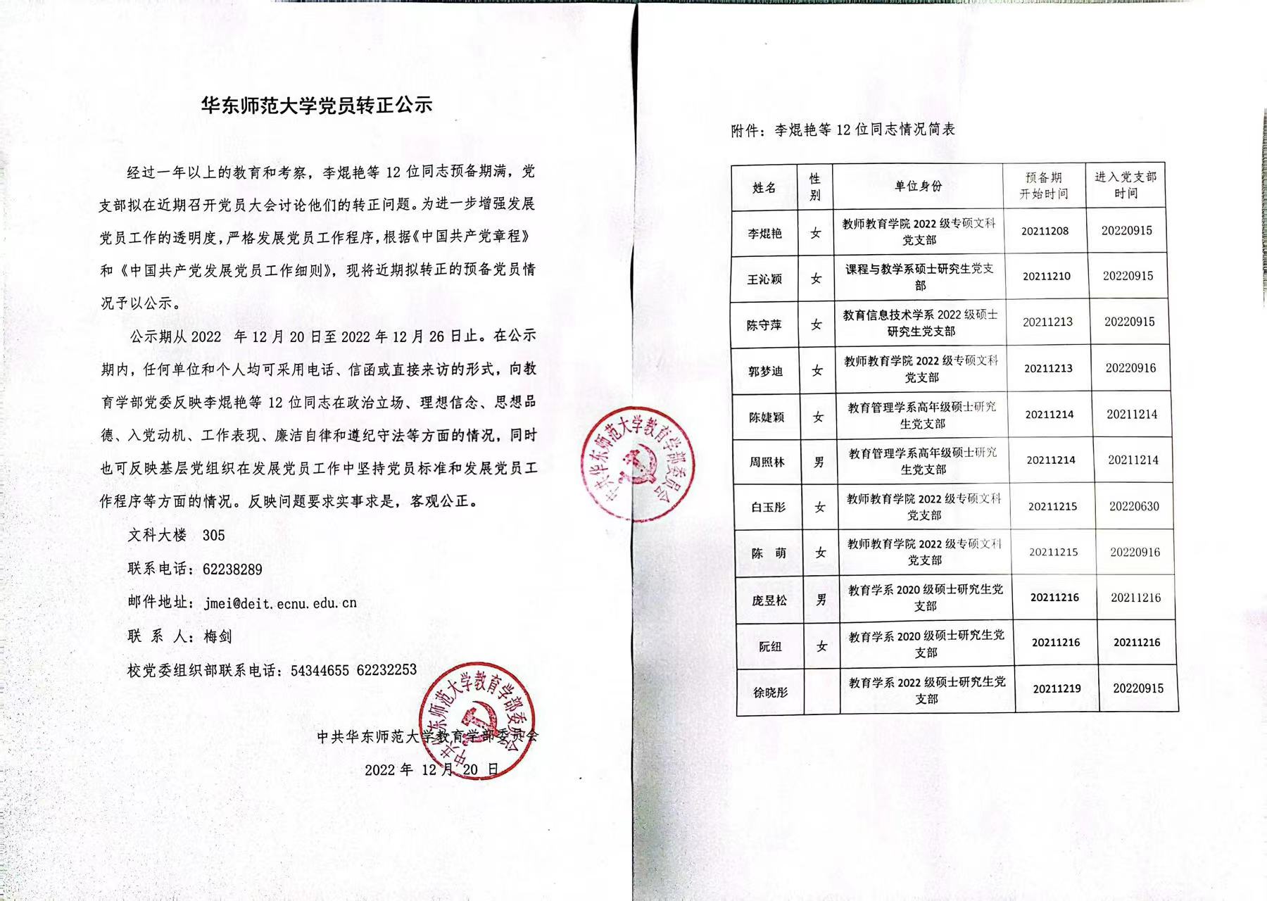 教育学部关于2022年度华东师范大学优秀共青团员、优秀共青团干部、五四红旗团组织的评选公示