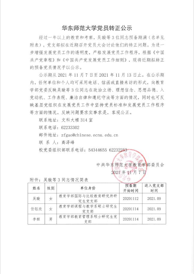 【公示】教育学部2021年11月预备党员转正公示(第二批)