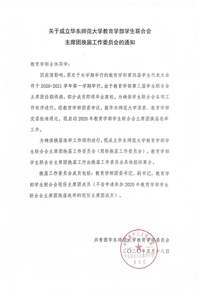 关于启动华东师范大学教育学部学生联合会主席团换届选举工作的通知