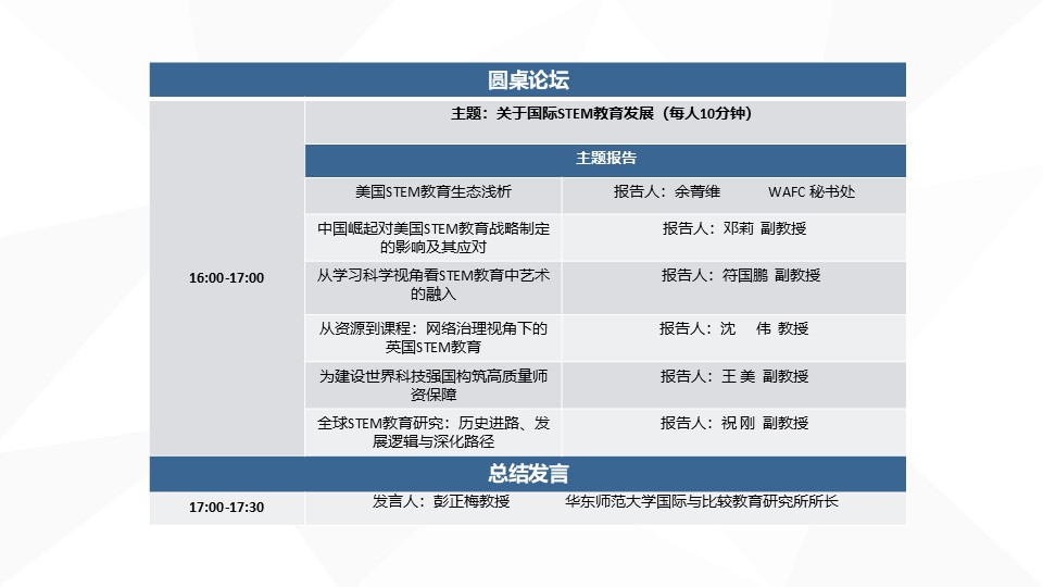 全球STEM教育创新中心成立仪式暨全球STEM教育圆桌论坛议程