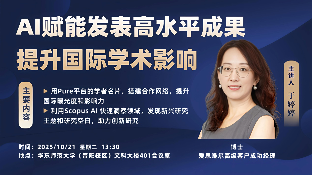 为进一步赋能高质量学术产出、提升学校国际学术影响力,华东师范大学Pure国际学术传播平台(pure.ecnu.edu.cn)已正式上线。10月21日,华东师范大学教育学部围绕“AI赋能发表高水平成果,提升国际学术影响”组织专题讲座,系统介绍如何将Pure平台打造为个人学术名片,拓展合作网络与国际曝光,同时分享Scopus AI的最新“Deep Research”代理式人工智能能力,助力复杂科研问题的计划与分析,加速学术发现。