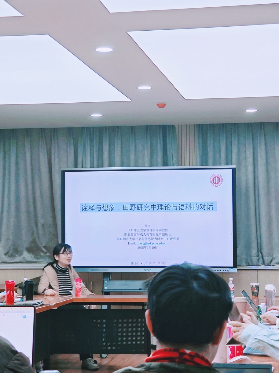2025年3月19日,华东师范大学教育学部青年教师联谊会主办的首期“青年学术沙龙”在文科大楼613室顺利举行。本次沙龙以“教育学人的社会学想象力”为主题,由姚荣教授主持,金津、郑杰、吴寒天三位青年学者围绕教育社会学经典议题、田野研究方法论与国际比较教育研究展开深度对话,吸引了学部众多师生的参与。