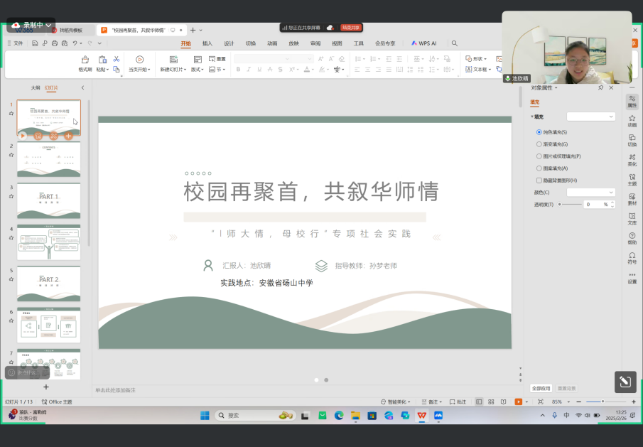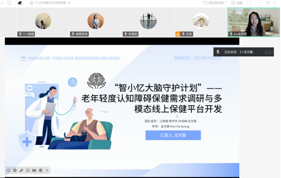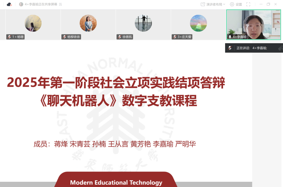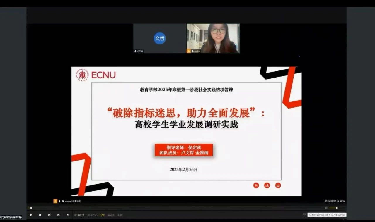 2月26日中午,教育学部2025年第一阶段主题社会实践结项答辩会分5个分会场同时进行。经评定,共79支实践团队顺利通过结项答辩,其中14支团队获评“重点项目”。此次答辩会分别由教育学部团委实践服务部恽凯淳、杜姝蓉、陈玉芳、郝明好、李燕等5名同学主持。