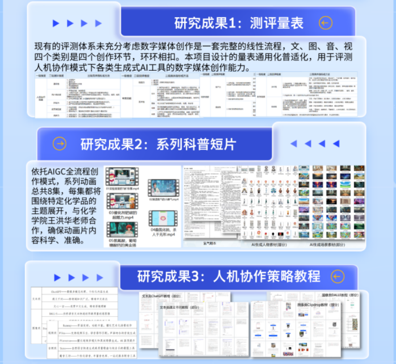 本项目聚焦AIGC在数字媒体创作中的应用,旨在以科普短片《大化西游》为案例探索人机协同创作的全流程模式,推动人工智能在教育与文化传播领域的发展。项目通过系统调研AIGC工具、构建完整的创作模式,并结合科普实践,以提升公众对生成式人工智能的理解。在《大化西游》短片制作方面,团队已完成初步脚本设计,测试了视频生成、语音合成等关键技术,还与上海吴迅中学达成合作,计划在后期开展AIGC技术科普讲座,以互动教学的方式提高学生对该技术的兴趣和理解。