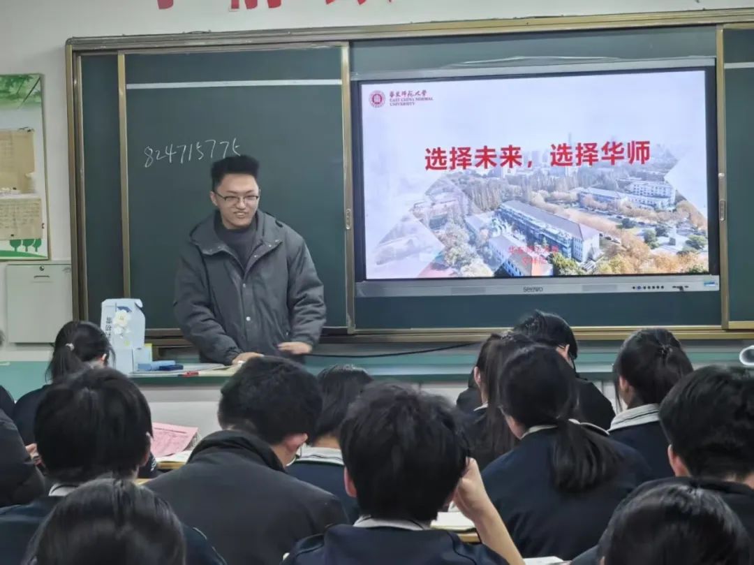 这是我第二次回到母校进行招生宣讲,相对于第一次有了许多不一样的感受。大学的专业学习、大创经历提升了我对学校的认同感,因此这次除了为学弟学妹们答疑解惑,我还希望发挥我的专业优势尝试为华师大招生提供研究建议,回馈我的高中和大学,这次活动也会更全面有意。