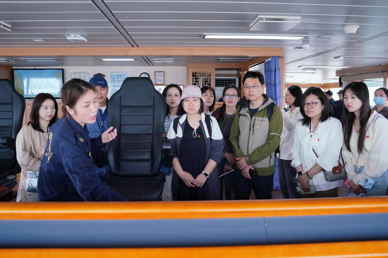 活动伊始,党员们在海事局工作人员的带领下登上“海巡08”“海巡01”两艘先进海巡船,近距离了解船舶功能与设备配置。工作人员详细讲解了船舶的航行系统、救援装备及智能化管理平台,并引导大家参观驾驶室等关键区域。通过实地观摩,开放教育学院的党员们深刻感受到海事科技的前沿成果,也为后续探讨海事人才培养提供了实践启发。