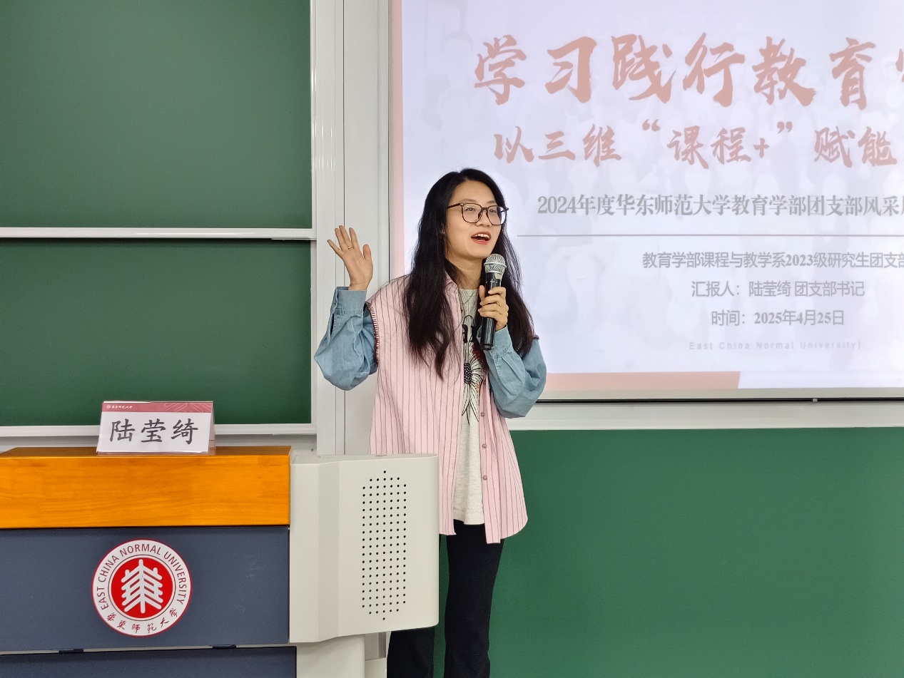 陆莹绮同学以“三维课程+赋能团学成长”为题,分享了基层团支部建设的经验。她首先介绍了支部的基本情况,然后详细阐述了三维育人矩阵的构建与实施。陆莹绮同学通过精品团课案例的介绍,展示了如何通过创新的教学方法和活动形式,提升团支部的凝聚力和影响力。她还对基层团组织建设中可能存在的问题进行了解答,为同学们提供了实用的解决方案。她的分享内容丰富、条理清晰,让同学们对基层团支部建设有了更深入的了解和认识。