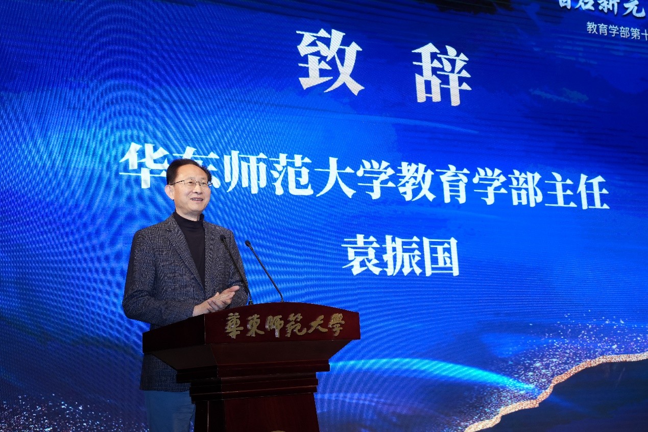 教育学部主任袁振国为本届表彰大会致辞。袁振国指出:今天,人工智能正快速崛起,成为突破“师”“生”这两大传统教育主体以外的第三大主体,对教育学人而言,一方面要培养批判性思维能力,学会观察、分析和独立判断;另一方面则要以人工智能赋能教育,以教育的数字化来拓展教育的新路径,重塑教育的新优势。随着人工智能的迅速发展,未来教育的新形态正在形成,希望教育学子能够真正地把人类的智慧和人工智能有效融合,产生1+1>2的效应,做未来教育的开创者。