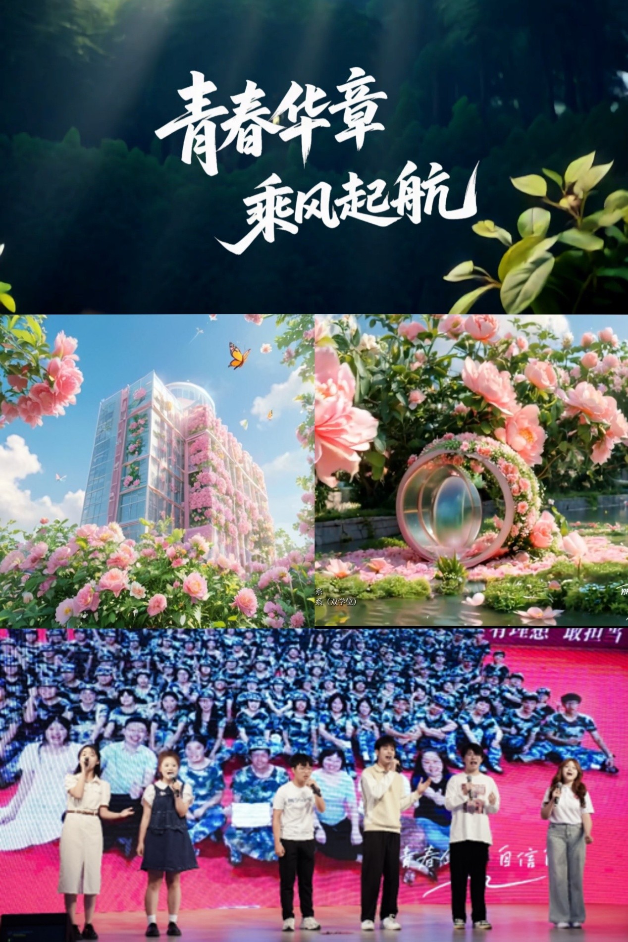 本届表彰大会,教育学子海选征集了代表“未来教育引领者”特点的关键词,再由AI进行谱曲,共同创作出本届表彰大会的主题曲《青春华章,乘风启航》。在表彰大会的最后,来自不同学科专业的学生代表共同演唱了这首歌曲。