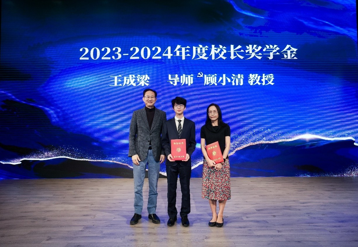 校长奖学金获奖者代表、教育信息技术学系研究生王成梁在大会上发言,他表示:“我将继续在教育技术的前沿领域深耕细作,探索智能时代教育变革的可能性,为构建人与技术和谐共生的教育新生态贡献自己的力量。在数字文明的比特湍流中,为人的主体性筑起认知的灯塔,照亮通往智慧彼岸的航道。”