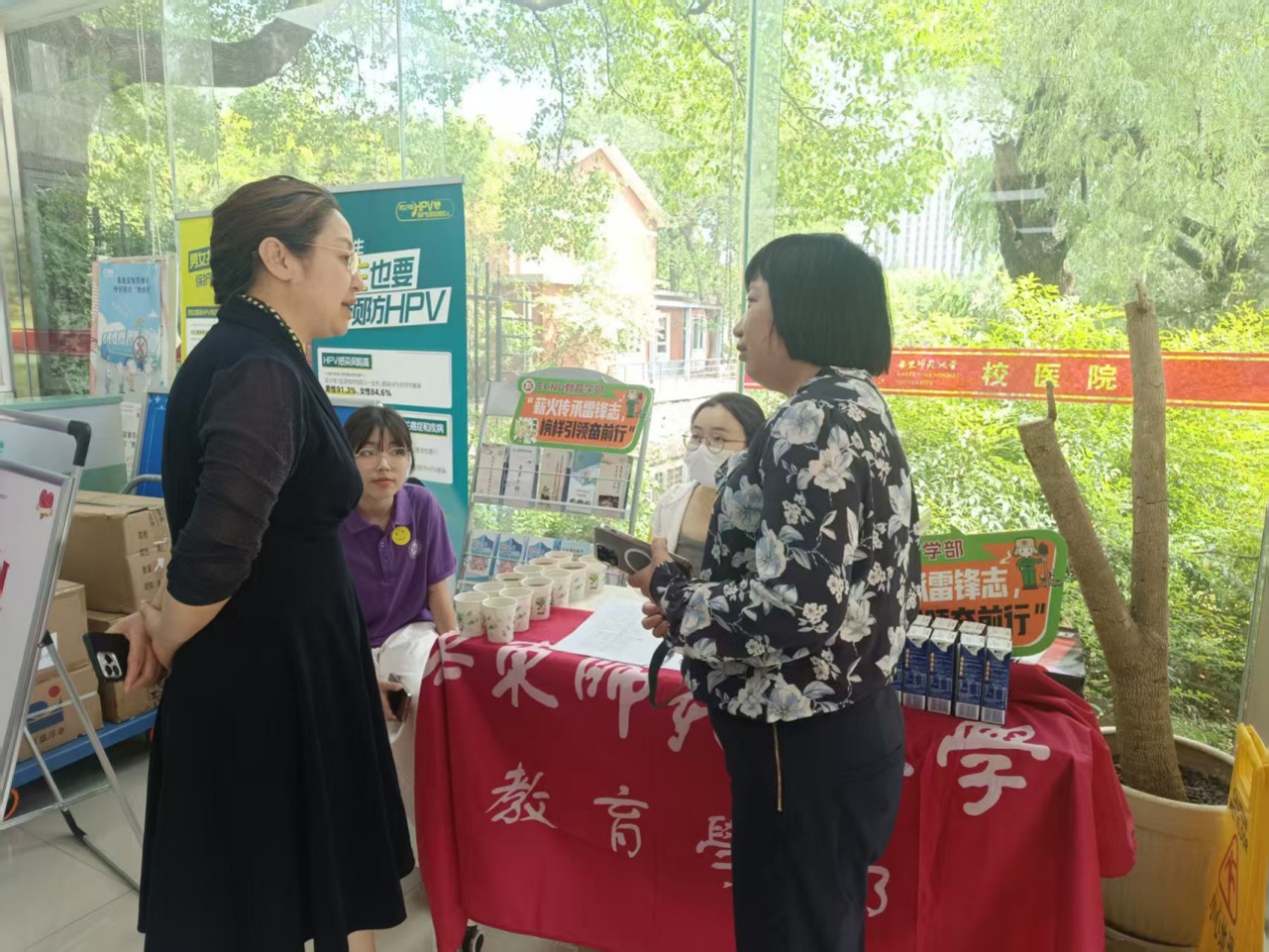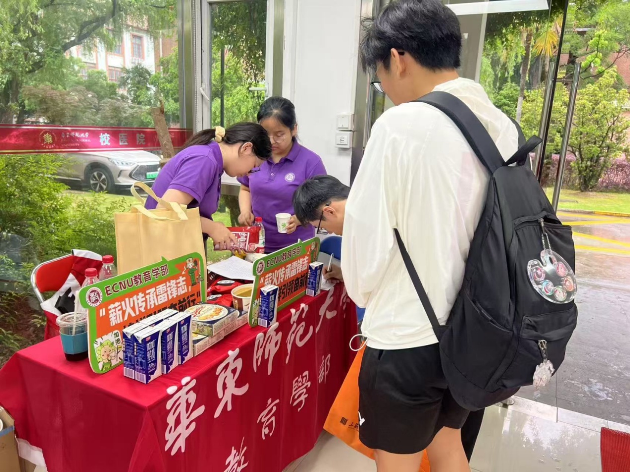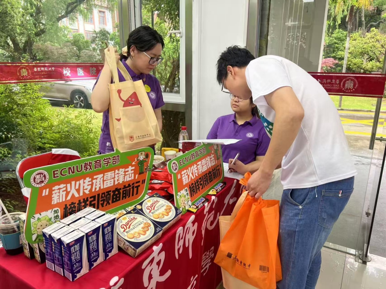 教育学部党委书记闫露老师、教育学部党委副书记沈晔老师、学生事务部主任孙梦老师、学生事务部副主任柳叶老师亲临现场,陪伴献血学子。他们轻声询问身体状况,为献血者递上红糖水,并叮嘱“按压针眼15分钟”“今日避免剧烈运动”。一份份牛奶、巧克力、饼干等等,承载着学部对学子身心健康的深切关怀。