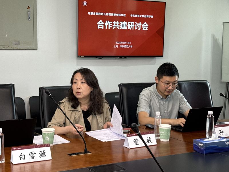 为推动与教育学部合作走深走实,进一步提升内蒙古民族幼儿师范高等专科学校发展建设水平,5月13日,内蒙古民族幼儿师范高等专科学校党委副书记、校长李春晖,学前教育系主任包丽珍,健康管理系主任赵艳霞,早期教育系主任吴海青,继续教育部主任李华凤,基础教育部主任郝蕊等一行到访教育学部,就深化和落实合作事宜开展洽谈。教育学部主任袁振国,党委书记闫露,副主任刘世清、匡瑛,综合办公室主任白雪源及相关系(部)代表出席了座谈会。会议由教育学部社会服务与事业发展部主任孙梦主持。
