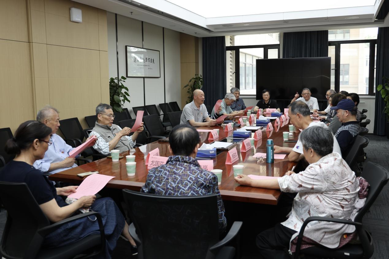 教育学部党委书记闫露向在座的老党员们介绍了学部上一年在事业发展方面取得的成绩,以及今年党建工作的重点。她强调,离退休党员是学部事业发展的重要力量和宝贵财富。期待退休支部持续组织开展好深入贯彻中央八项规定精神学习教育,以家风促党风,发挥教育家精神的传承优势,为学校和学部建设注入“银龄力量”。