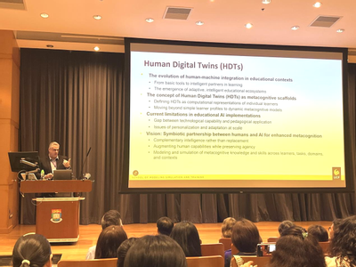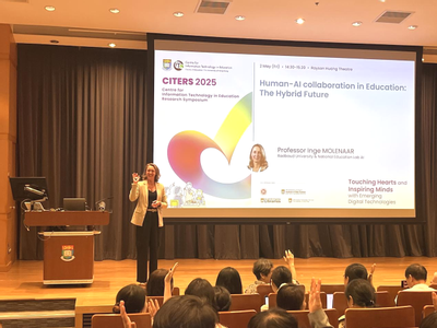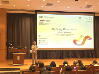 在港期间,师生代表团到访香港大学教育学院,参加由该校信息技术教育中心(Centre for Information Technology in Education,CITE)主办的"以新兴数字技术启智润心"主题论坛。本次论坛采用主旨演讲、论文报告、海报展示、学术沙龙、圆桌对话等创新性的多元学术形式,激发跨界思想碰撞,分享全球智能教育最新研究成果。