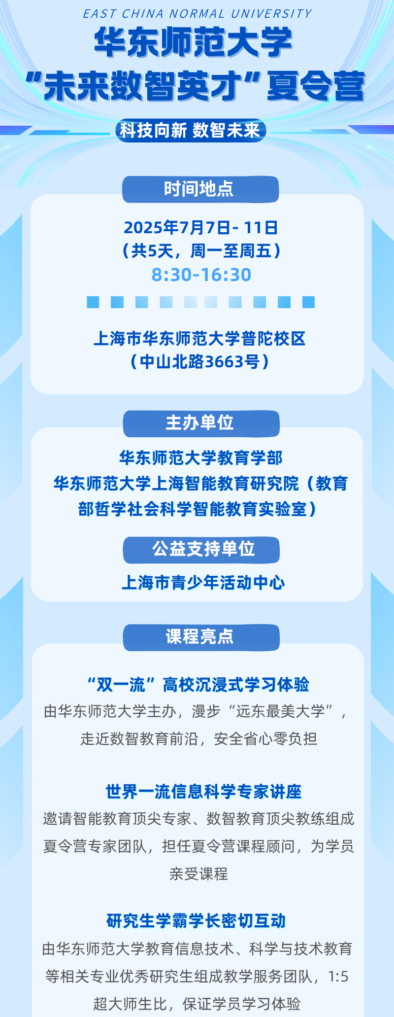 华东师范大学“未来数智英才”夏令营 火爆招生中