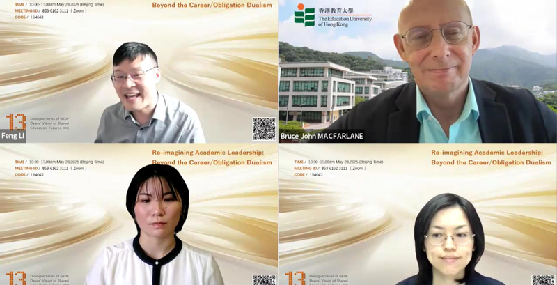 本次活动由香港教育大学教育及人类发展学院院长Bruce Macfarlane教授担任主讲嘉宾,就“Re-imagining Academic Leadership: Beyond the Career/Obligation Dualism”这一主题进行分享。筑波大学人文科学研究所副教授Tomoko Tokunaga,筑波大学教育研究生院博士生Yukashi Asato受邀参与对话。我校教育学部高等教育研究所副教授李峰担任本次活动主持人。