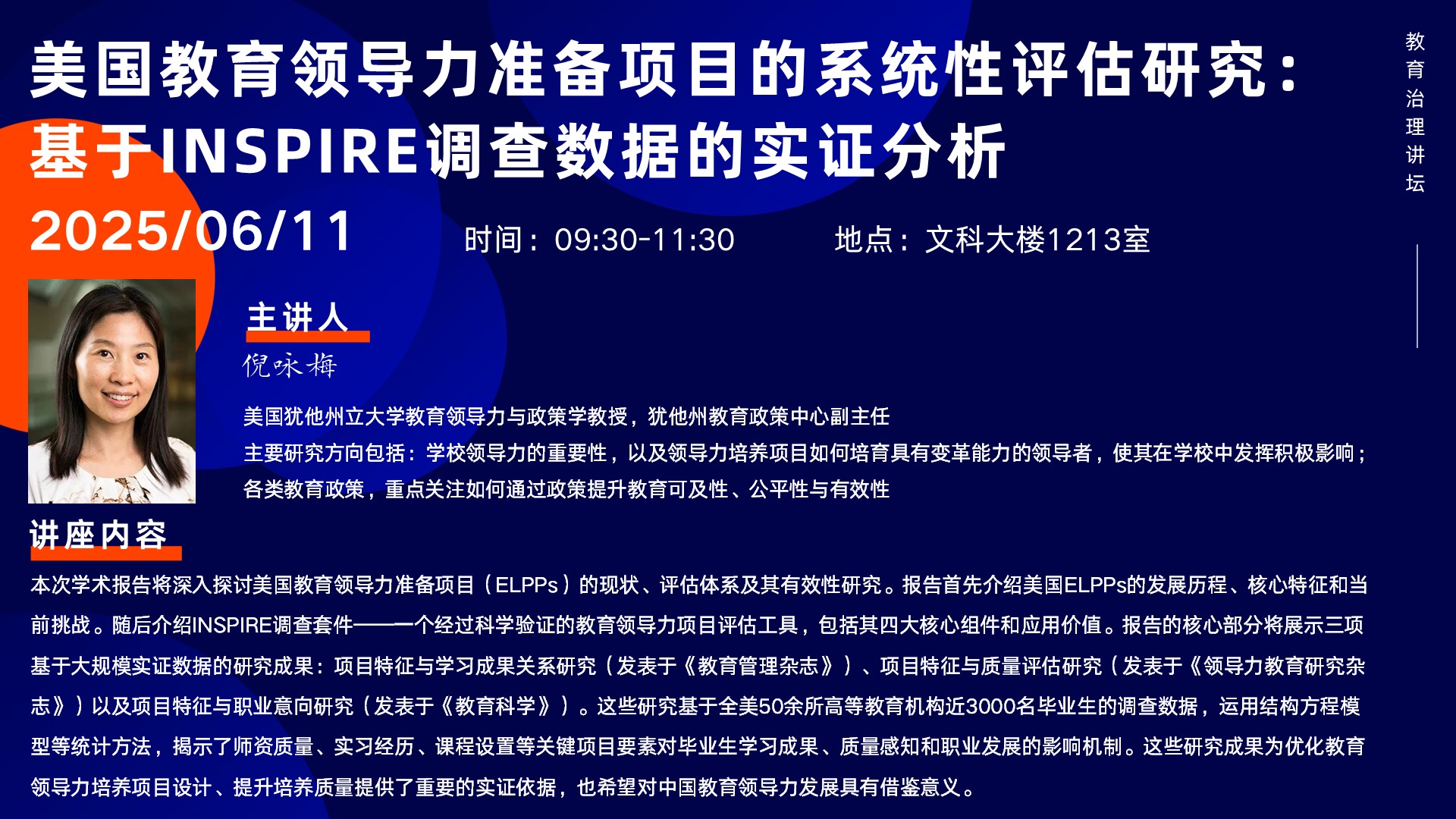 倪咏梅教授:美国教育领导力准备项目的系统性评估研究: 基于INSPIRE调查数据的实证分析
