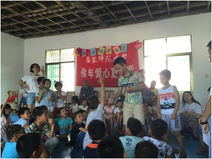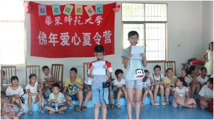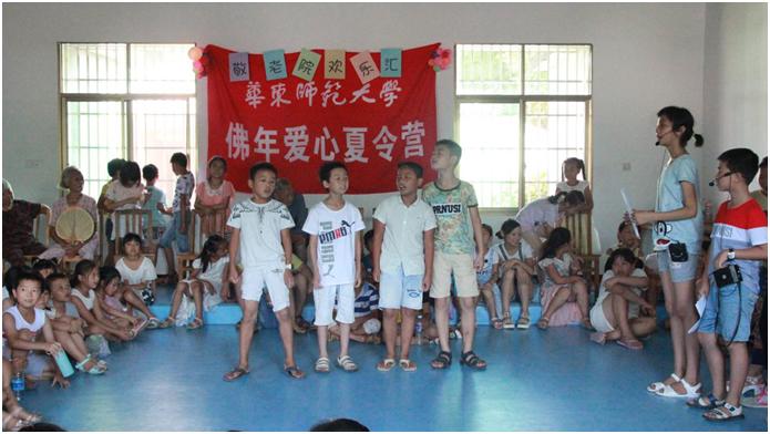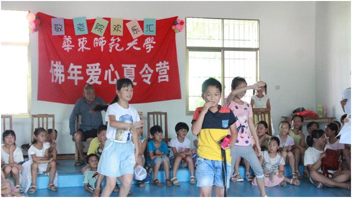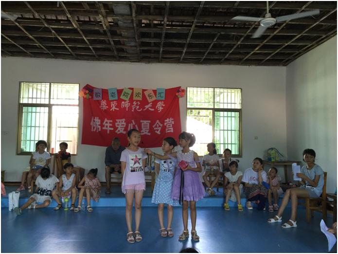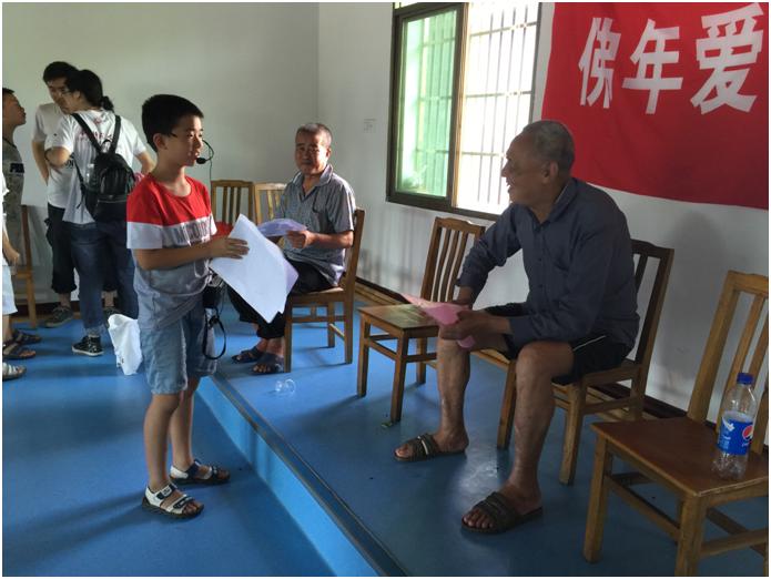 上午9点10分,全员到达目的地——沩山镇第一敬老院。由于带队老师吴丹和佛年学校的易老师已经提前到达敬老院做前期准备工作,所以我们大部队到达的时候会场已经布置完毕。9点30分,在小朋友们雷鸣般的掌声中以及老人们的期待中,敬老院欢乐汇活动在两位小主持的宣布下正式拉开帷幕。