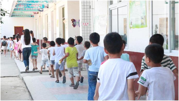 迎着朝阳,孩子们在志愿者们的带领下前往敬老院。
