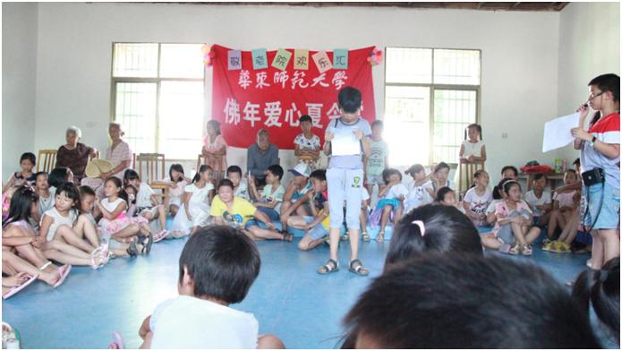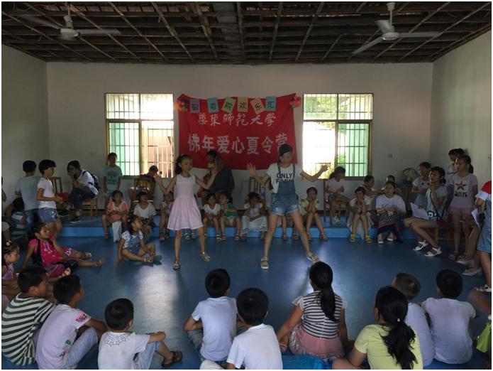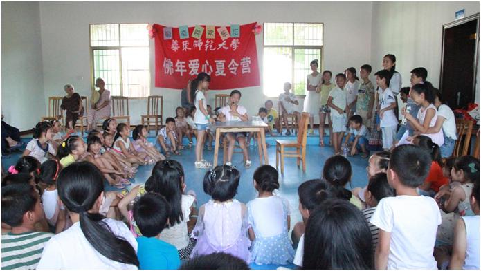 五个节目表演完毕,活动来到了中场娱乐时间。由聪明活泼的李帅同学主持的”你来比划我来猜”环节受到了在场孩子们的热烈欢迎。起初孩子们都是围坐在舞台的四边,然而来到游戏环节时,他们都无声地挪坐到了主持人的四周,将小主持人包围了起来。小主持李帅也不负众望,主持时台风稳健、拿捏有度,不仅声音清脆响亮而且与观众们互动时也颇有风范。他将现场的孩子有秩序地组织起来参加游戏,甚至调动孩子们将志愿者也请上舞台参与游戏,整个游戏环节氛围十分融洽。