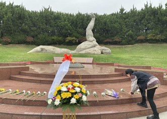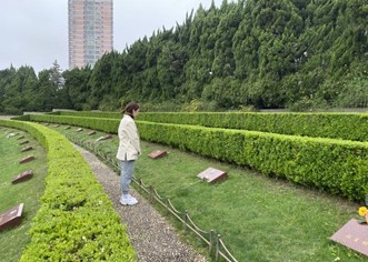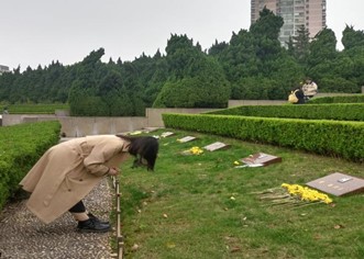 樊苗苗:临近清明节,与同学们一起来到龙华烈士陵园。这里有271位无名烈士,我们来到这里学习英雄烈士们的奉献故事与英雄事迹。我在一位女烈士墓前久久伫立,伴着空中淅沥且忧愁的雨滴,我怀念着这位默默无闻的爱国烈士-周琦,并用心记下这位年仅37岁女先烈的英雄事迹,在纪念碑前鞠躬献花。感谢他们的牺牲与奉献,换来了今日的美好生活。新的时代,让我们继续传承先烈的精神,发奋学习,为祖国建设继续添砖加瓦!