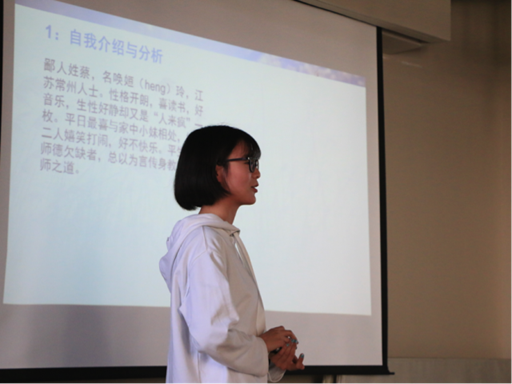 来自16级教育技术学系本科的张静雅通过为学生设计课程使课程轻松有趣的举例,说明了教师工作的独特体验。并就考研、工作、出国介绍了自己的选择。