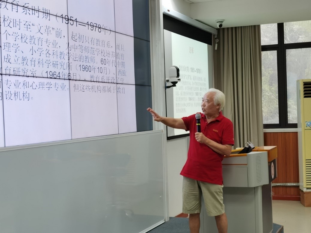 9月2日下午,教育学部党委邀请了学部关工委副主任钱景舫,在文附楼118为教育学部2021级新生开展了“承古励新”部史教育。