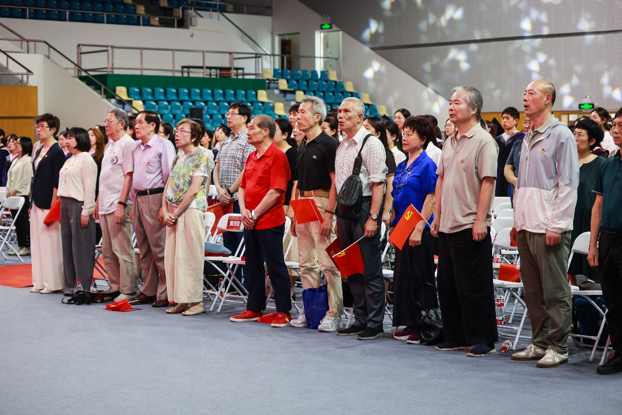 学部关工委副主任张志杰带领全体师生党员重温入党誓词。庄严的党旗下,铿锵有力的誓言响彻整个会场。