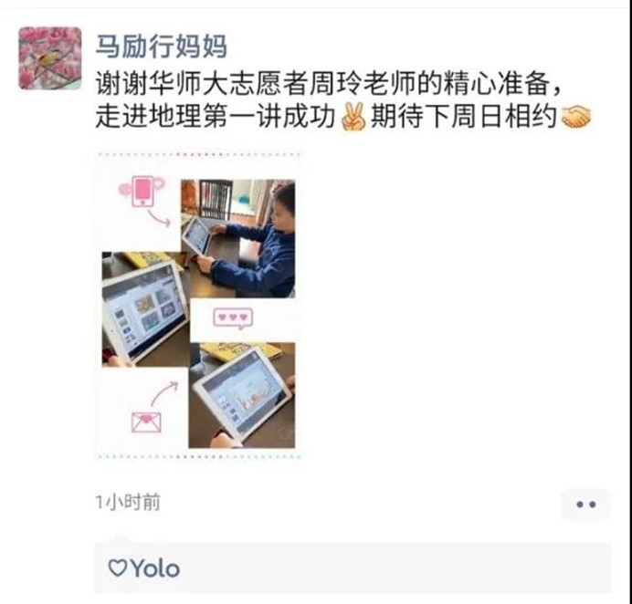 初次尝试在线教学,会有不适应与各种困难,但同学们积极发挥团队的力量,在志愿者群中互相交流相同学科、相近学段的学生辅导,展开小型的教研交流。为推动志愿服务更好地进行,党支部针对志愿者们在线上教学中提到的困惑进行集中讨论,开展了以“精准对接抗疫医护,在线教学如何更有成效”为主题的支部大会,集课程与教学论专业硕博士生的力量,为志愿者们的在线教学出谋划策。