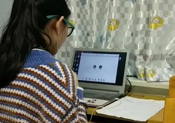志愿者借助在线平台为学生上数学课