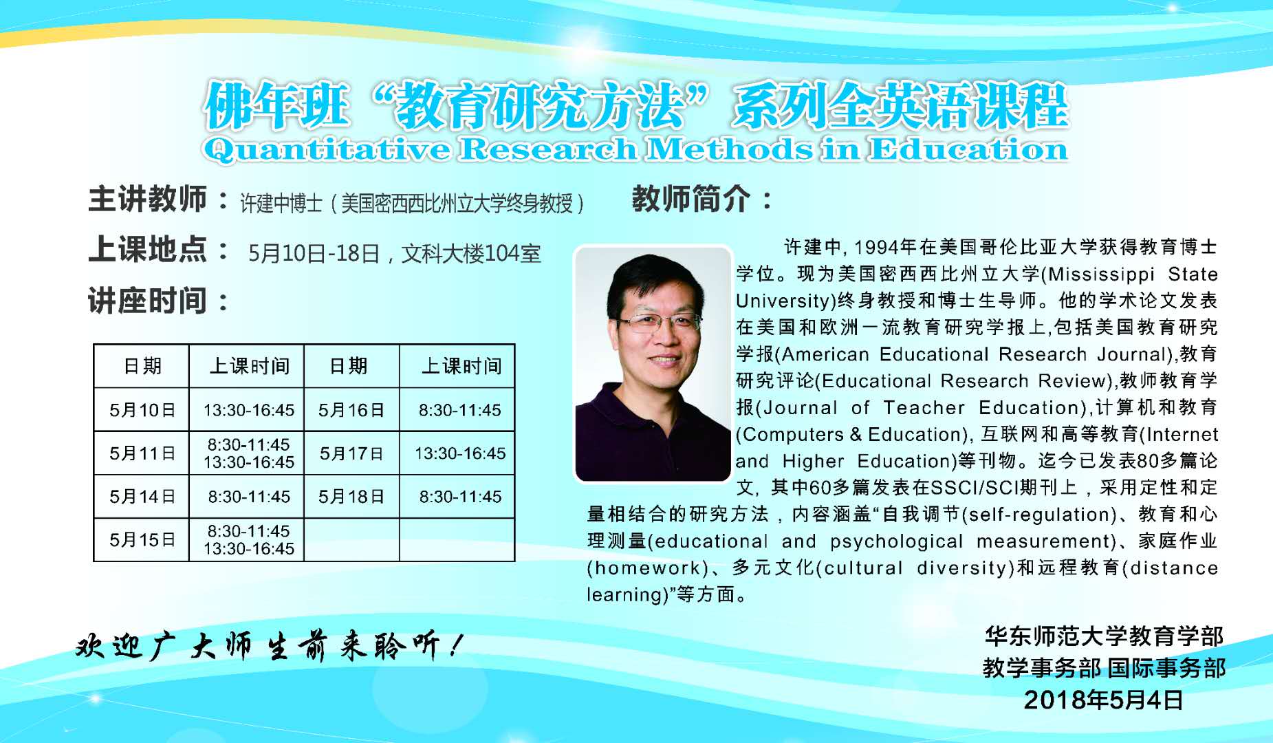 许建中教授:佛年班“教育研究方法”系列全英语课程