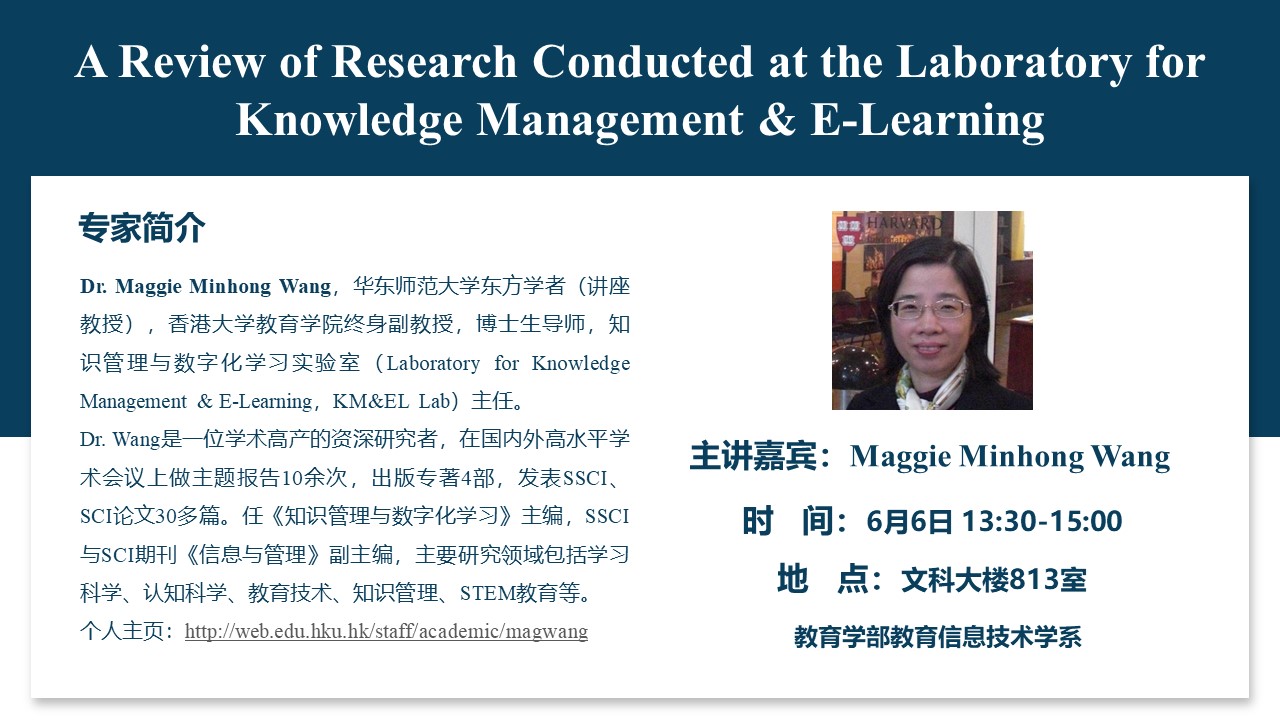 Maggie Minhong Wang教授:A Review of Research Conducted at the Laboratory for Knowledge Management & E-Learning