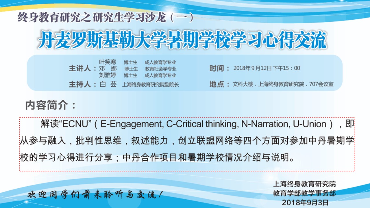 终身教育研究之研究生学习沙龙(一):丹麦罗斯基勒大学暑期学校学习心得交流