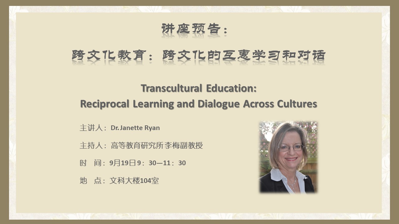 Dr. Janette Ryan:跨文化教育:跨文化的互惠学习和对话