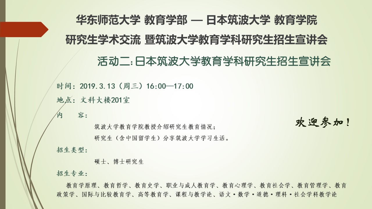 教育学部 — 日本筑波大学 教育学院研究生学术交流 暨筑波大学教育学科研究生招生宣讲会