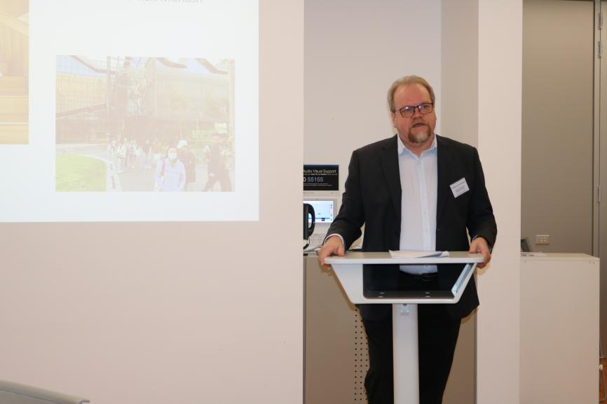 本次学术周代表团负责人、教育学系系主任黄忠敬教授介绍了我校教育学部的沿革发展、研究项目、国际参与、研究能力等方面情况。他还回溯了华东师范大学教育学部与莫纳什大学教育学院友好合作的历史渊源,并对与莫纳什大学教育学院的持续交流、未来合作、开展高质量研究表示高度期待。