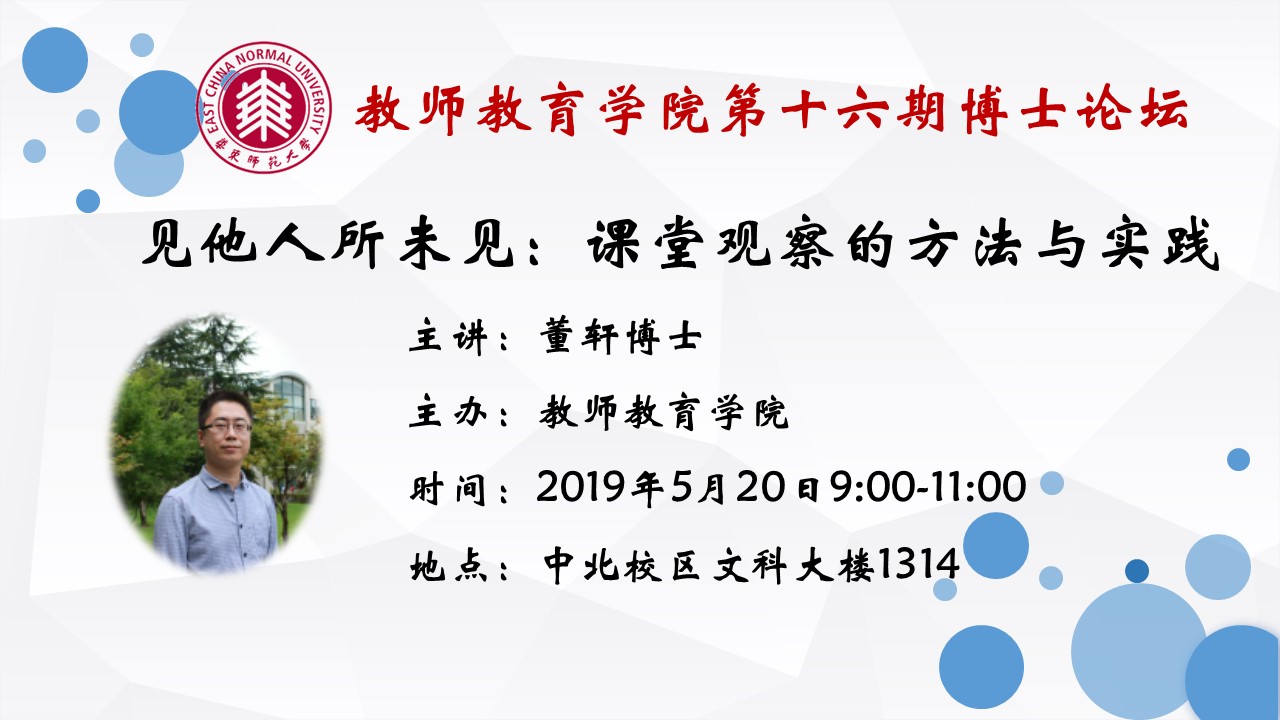 董轩博士:见他人所未见:课堂观察的方法与实践