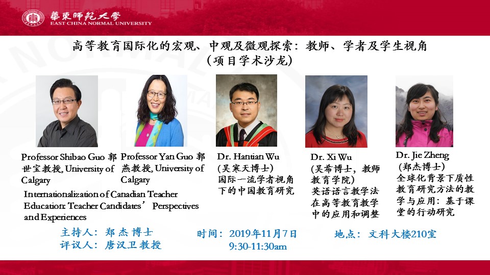 高等教育国际化的宏观、中观及微观探索:教师、学者及学生视角 (项目学术沙龙)