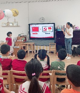今年是庆祝建党百年的重要年份,华师大附属幼儿园党支部为深入贯彻落实习近平总书记在学校思政课教师座谈会上的重要讲话精神,结合工作实际,将思政教育融入并践行到主题党日活动中。9月28日,支部党员教师分别走进大班课堂,开展了一节生动的幼儿园思政教学活动。