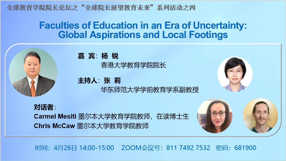 活动预告 | 全球教育学院院长论坛之“全球院长展望教育未来”系列活动四