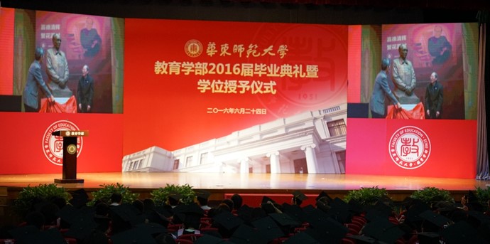 2016年6月24日下午,华东师范大学教育学部2016届毕业典礼暨学位授予仪式在中北校区思羣堂隆重举行。教育学部2016届毕业生、教师代表和家长(家属)等共计800余人欢聚一堂,共同见证这一美好的时刻。