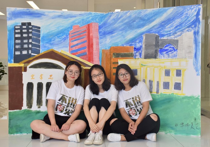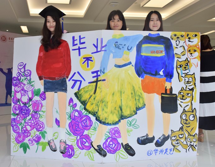 “2017,向您看齐”活动为毕业生与亲爱的袁振国主任单独合影留念提供机会,合照背景板有3D效果图,还有美艺协会学弟学妹们为毕业生手绘的创意展板;”2017,缺你BOOK”收集到毕业生赠给2017级新生的300余本书,以及分享求学感悟的100张祝福卡片。