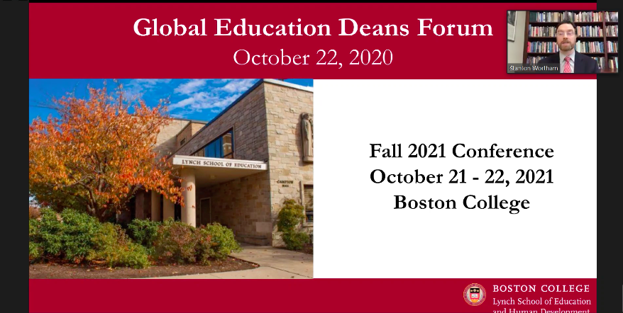 本次线上交流会由波士顿学院教育与人类发展学院院长Stanton Wortham主持。会议伊始,各教育学院院长在致以相互问候的同时,均表明在全球新冠疫情形势严峻的背景下,教育在面临诸多挑战的同时也催生了教育的各种新形式,期待世界各国教育学院领导者跨越国界和地区分享经验与交流合作,促进各地区教育问题的解决。